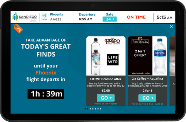 ‘Intelligent’ or smart carts, were deployed as a pilot at the California gateway late last year as part of the airport’s Innovation Lab program, designed to hone novel concepts into real-world solutions to make life easier for passengers. One example is AtYourGate, the mobile ordering food and drink delivery service which, after its San Diego Airport rollout, secured seed funding of $2 million by Triton Funds and is now in nine North American airports.