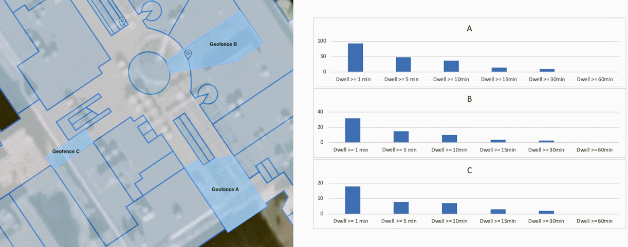 Leverage user counts and dwell times within predefined geofences to inform strategic resource allocation and operational enhancements.